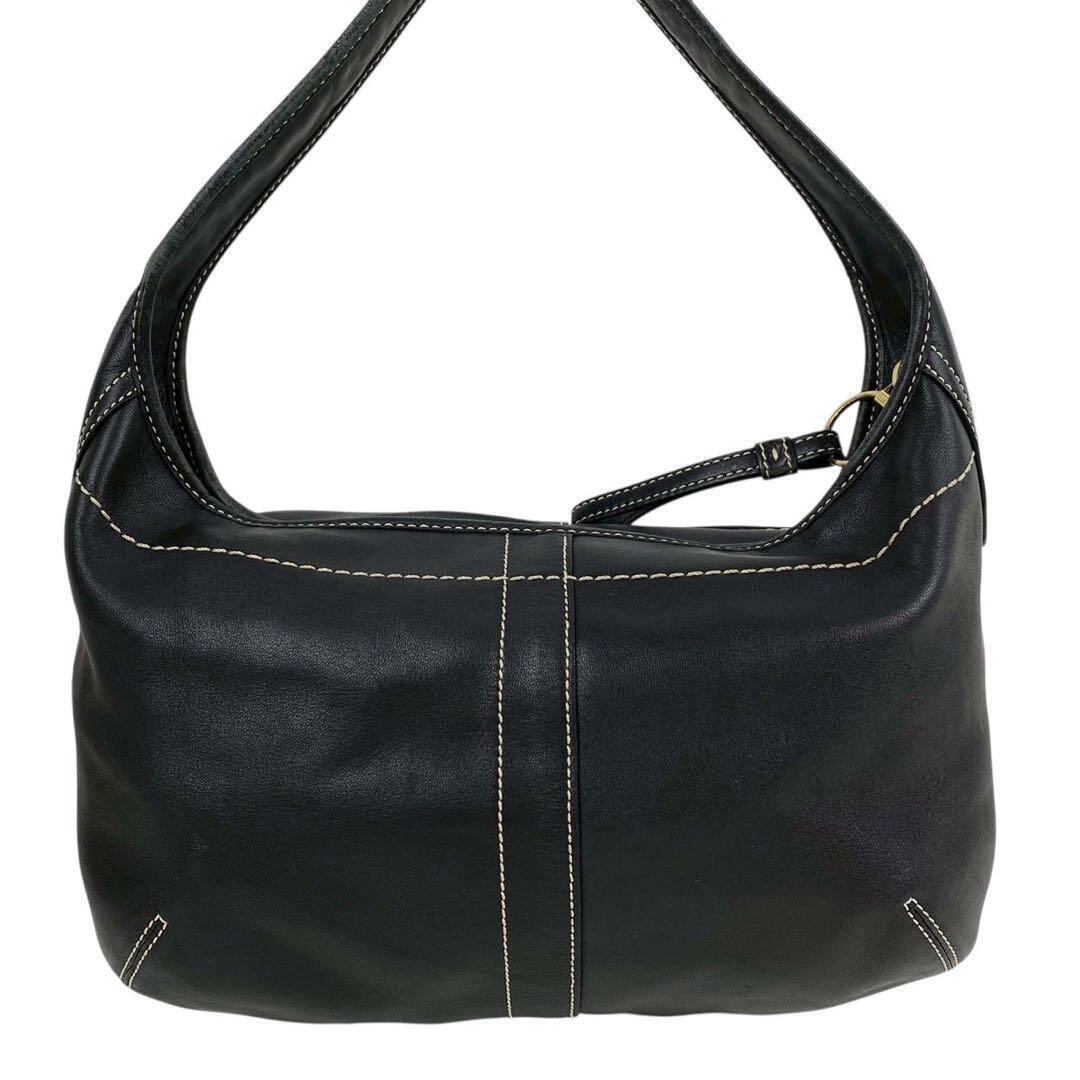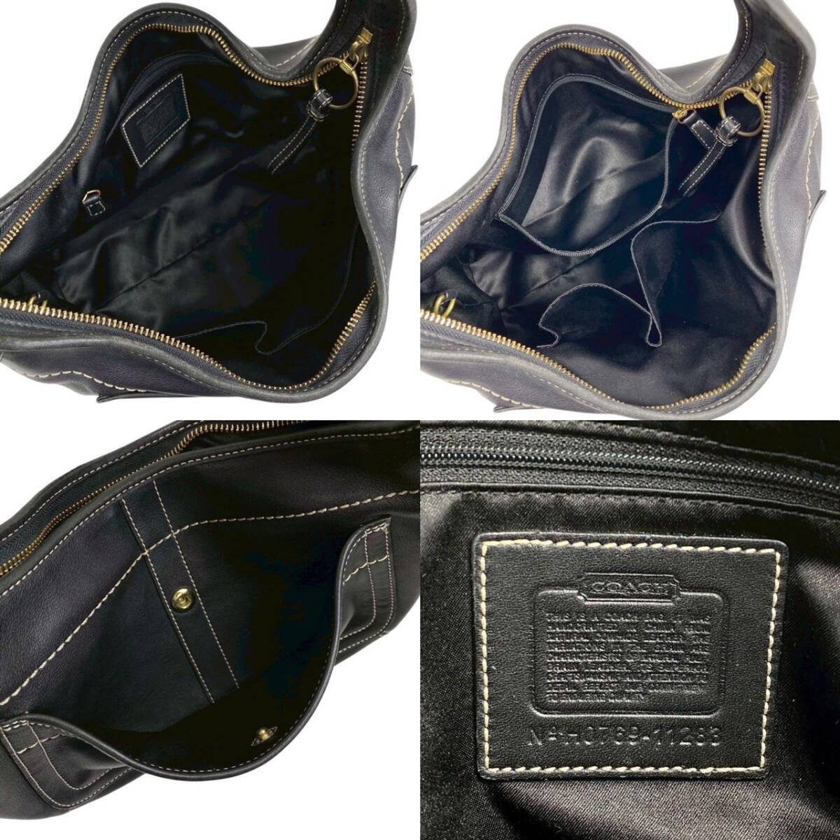 【B3050】 COACH コーチ ワンショルダーバッグ ハンドバッグ ホーボー ハーフムーン オールレザー ブラック ステッチ 金ロゴ 11283