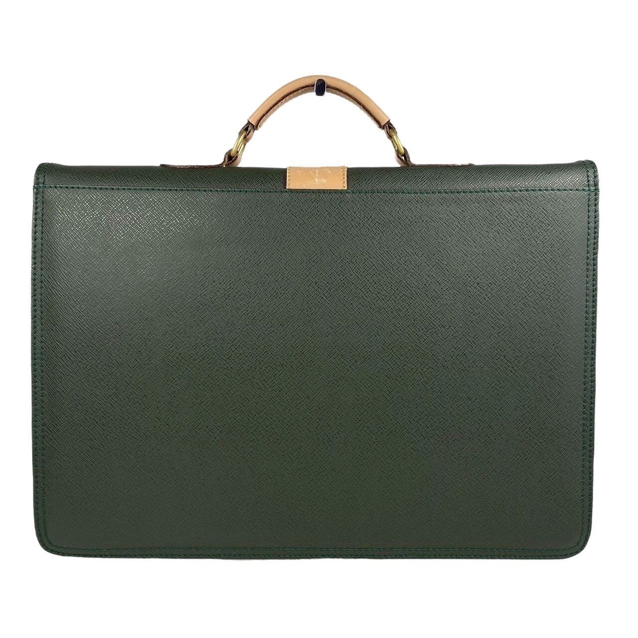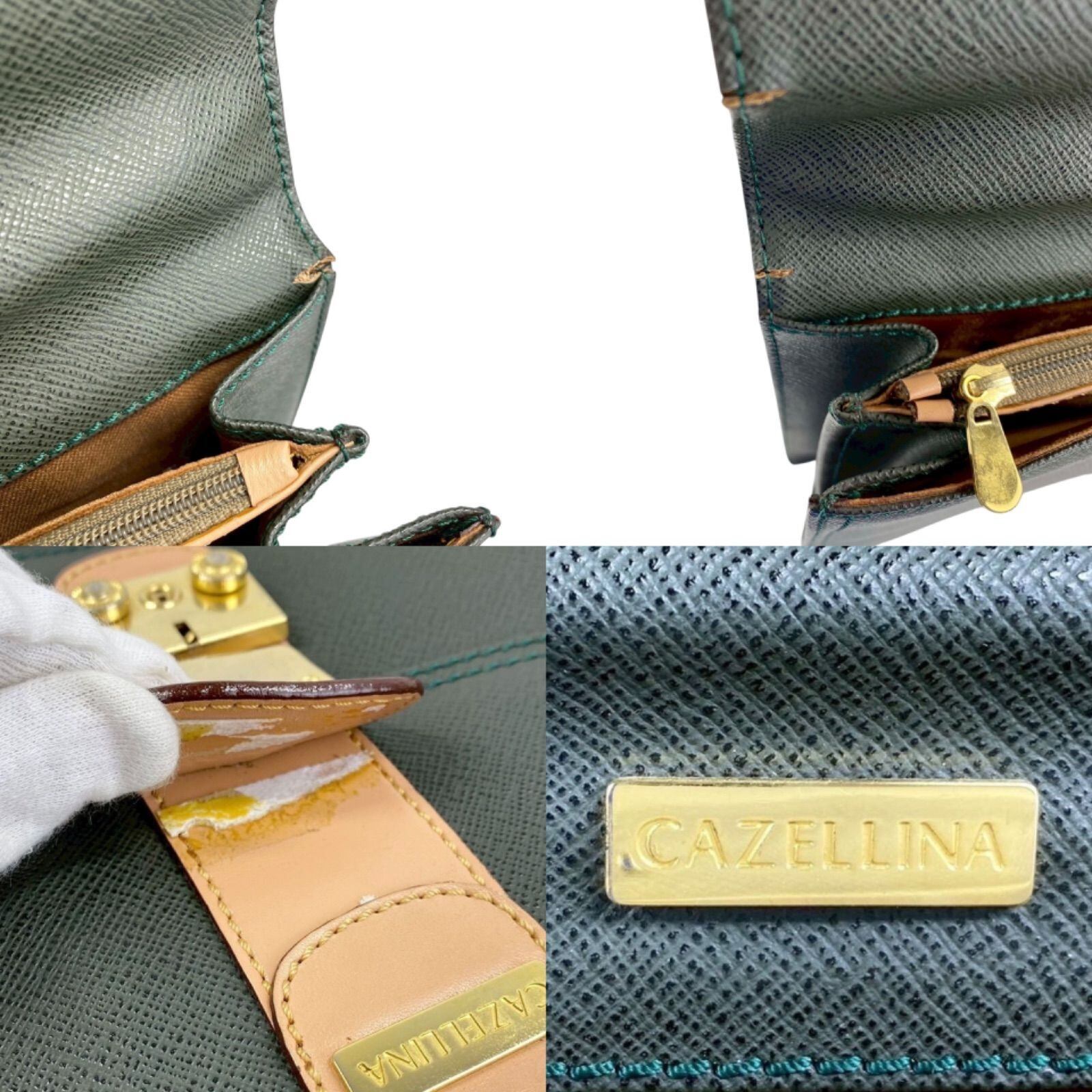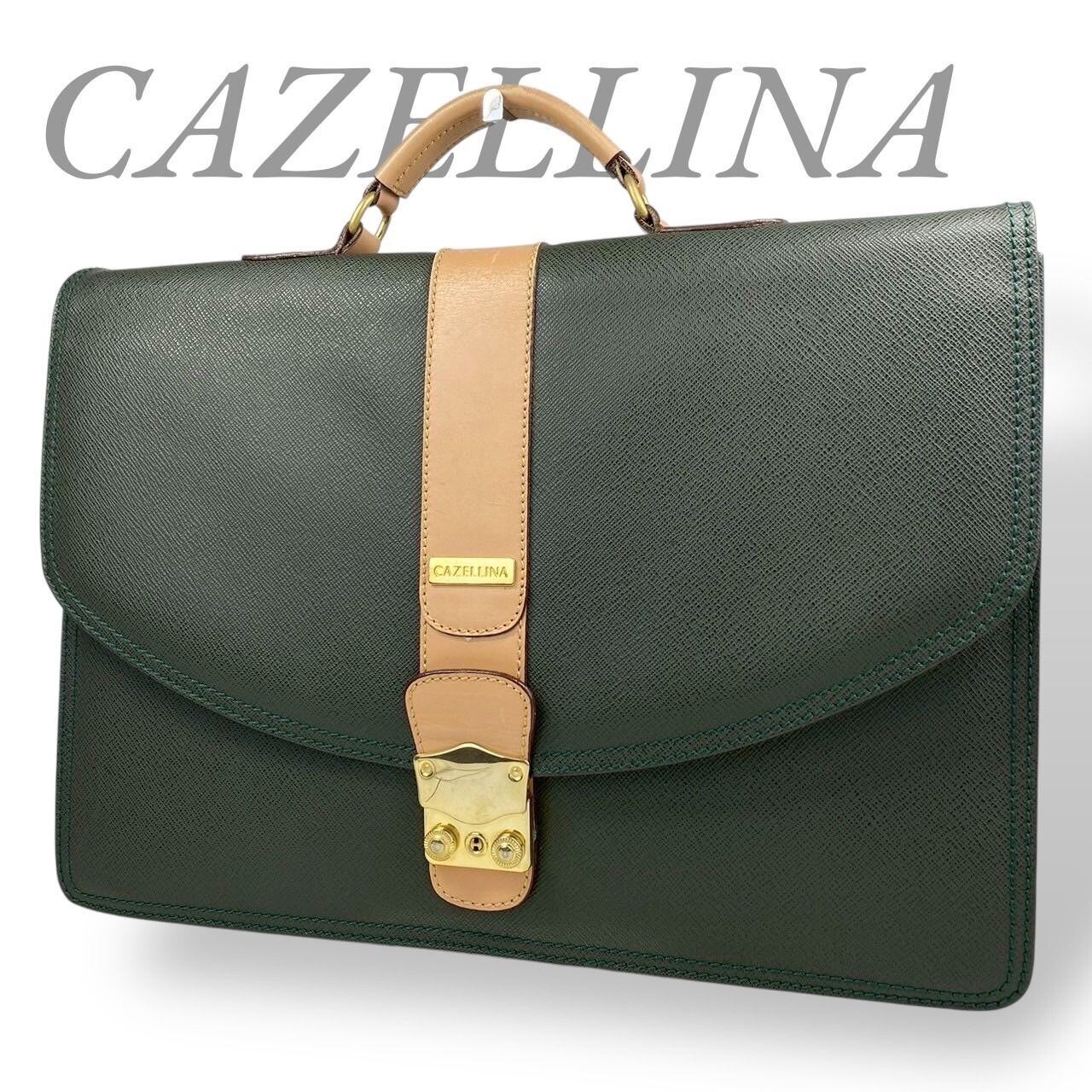【B3635】 CAZELLINA カゼリーナ ビジネスバッグ ハンドバッグ ビジネス ファスナー グリーン レザー A4収納可