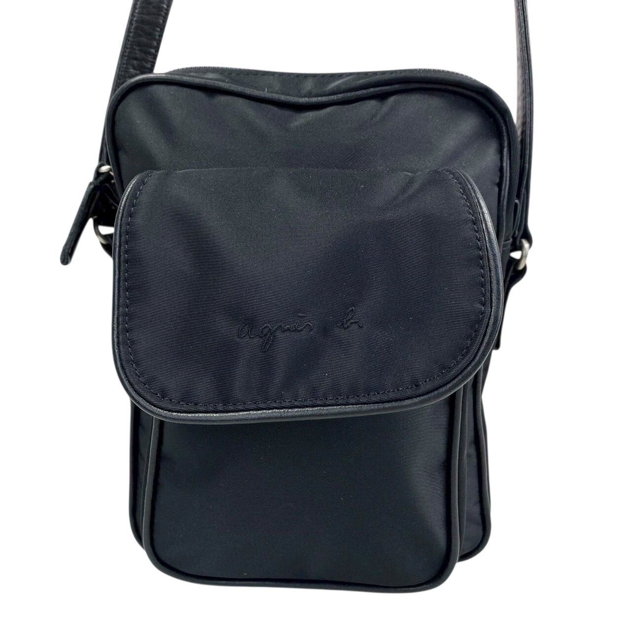 【B3721】 agnes b. アニエスベー ショルダーバッグ ナイロン ファスナー マグネットボタン ブラック 斜めがけ